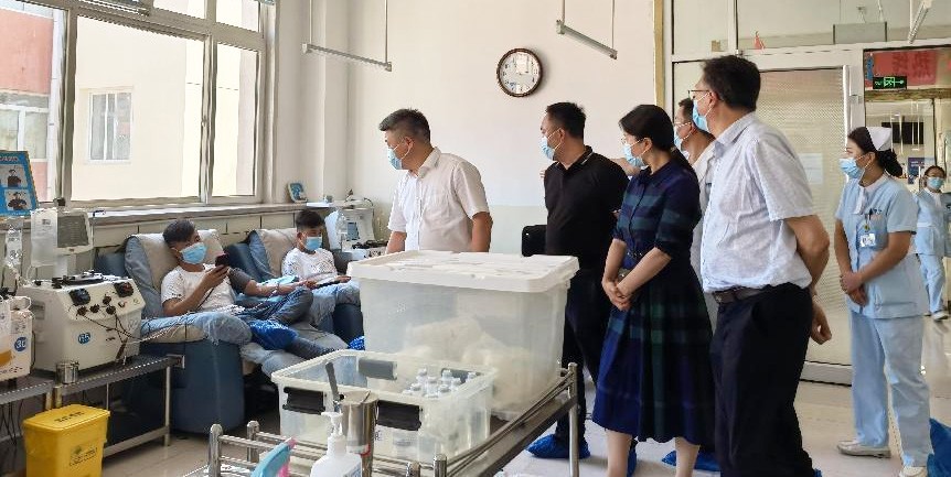 8月17日,天壇生物黨委書記、副總經(jīng)理劉亞娜,天壇生物黨委副書記、常務(wù)副總經(jīng)理周東波一行5人到青銅峽血漿站調(diào)研。血源管理中心副總吳婷,區(qū)域血源管理總監(jiān)路東陪同調(diào)研。劉亞娜一行實(shí)地考察了漿站的設(shè)施設(shè)備、工作流程、質(zhì)量程序文件以及防疫措施和物品使用情況。隨后,青銅峽漿站總經(jīng)理馬湘就漿站黨建工作、血源發(fā)展、漿站運(yùn)營、支持當(dāng)?shù)匾咔榉揽毓ぷ鞯确矫孢M(jìn)行匯報(bào),詳細(xì)闡述了漿站發(fā)展經(jīng)驗(yàn)及未來規(guī)劃。
