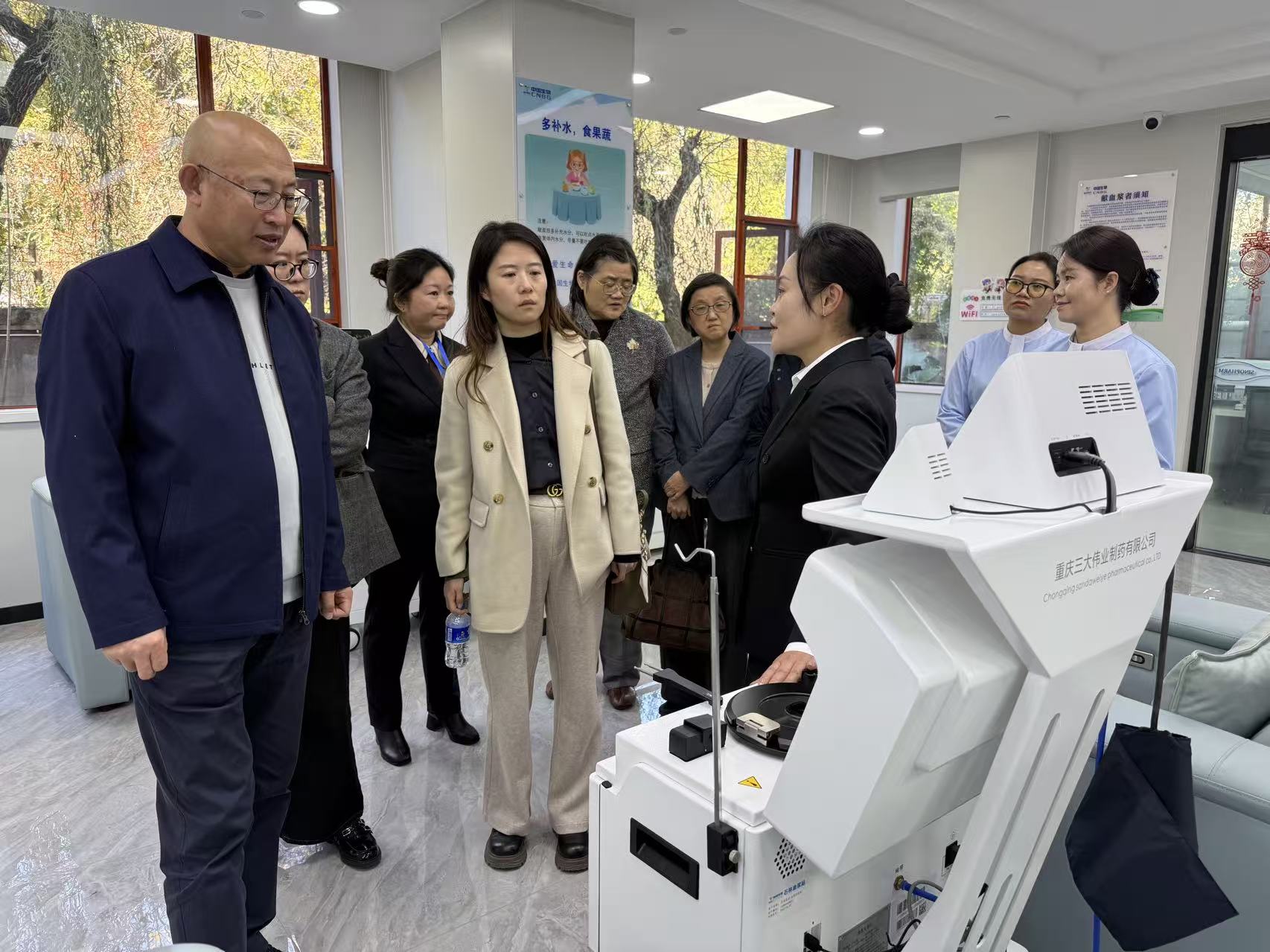 在石林漿站,調(diào)研組實(shí)地走訪了獻(xiàn)血漿者接待區(qū)、采漿操作區(qū)、血漿儲存冷鏈間等全流程區(qū)域,詳細(xì)了解獻(xiàn)血漿者身份核驗(yàn)、健康征詢、無菌采漿操作、血漿即時(shí)檢測及低溫儲運(yùn)管理等環(huán)節(jié)的標(biāo)準(zhǔn)規(guī)范與質(zhì)量管控措施,并就獻(xiàn)血漿者健康管理、血漿源頭質(zhì)量保障等議題與現(xiàn)場人員進(jìn)行了充分溝通。