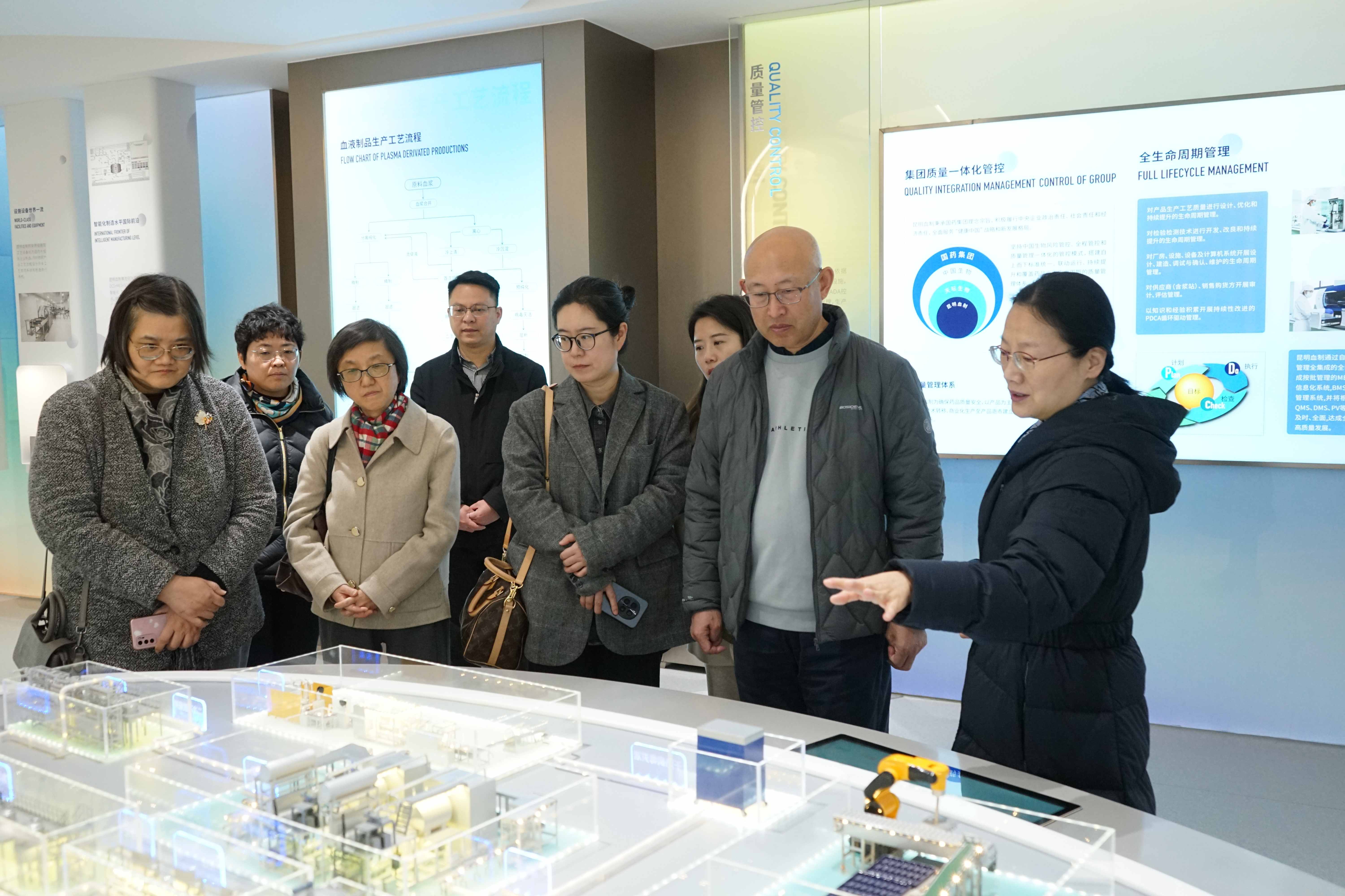 隨后,調(diào)研組前往國藥天壇昆明,先后參觀企業(yè)展示廳、血液制品生產(chǎn)車間、生物實(shí)驗(yàn)室及信息中心,全面了解了公司從原料血漿投入到終端產(chǎn)品上市的全產(chǎn)業(yè)鏈布局。調(diào)研組重點(diǎn)關(guān)注破袋融漿、產(chǎn)品包裝等環(huán)節(jié)的智能化設(shè)備與過程質(zhì)控措施,圍繞血漿檢測技術(shù)、產(chǎn)品檢測方法、信息化系統(tǒng)建設(shè)等方面與國藥天壇昆明展開深入交流。