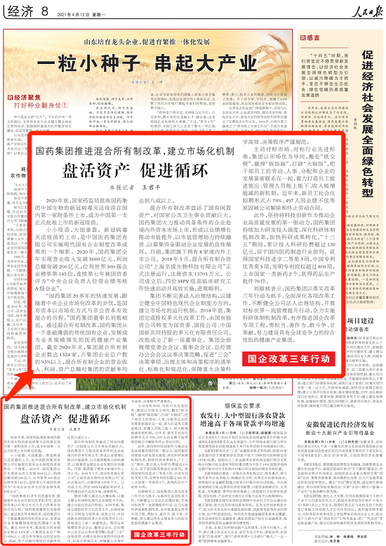 國藥集團推進混合所有制改革,建立市場化機制 盤活資產(chǎn) 促進循環(huán)