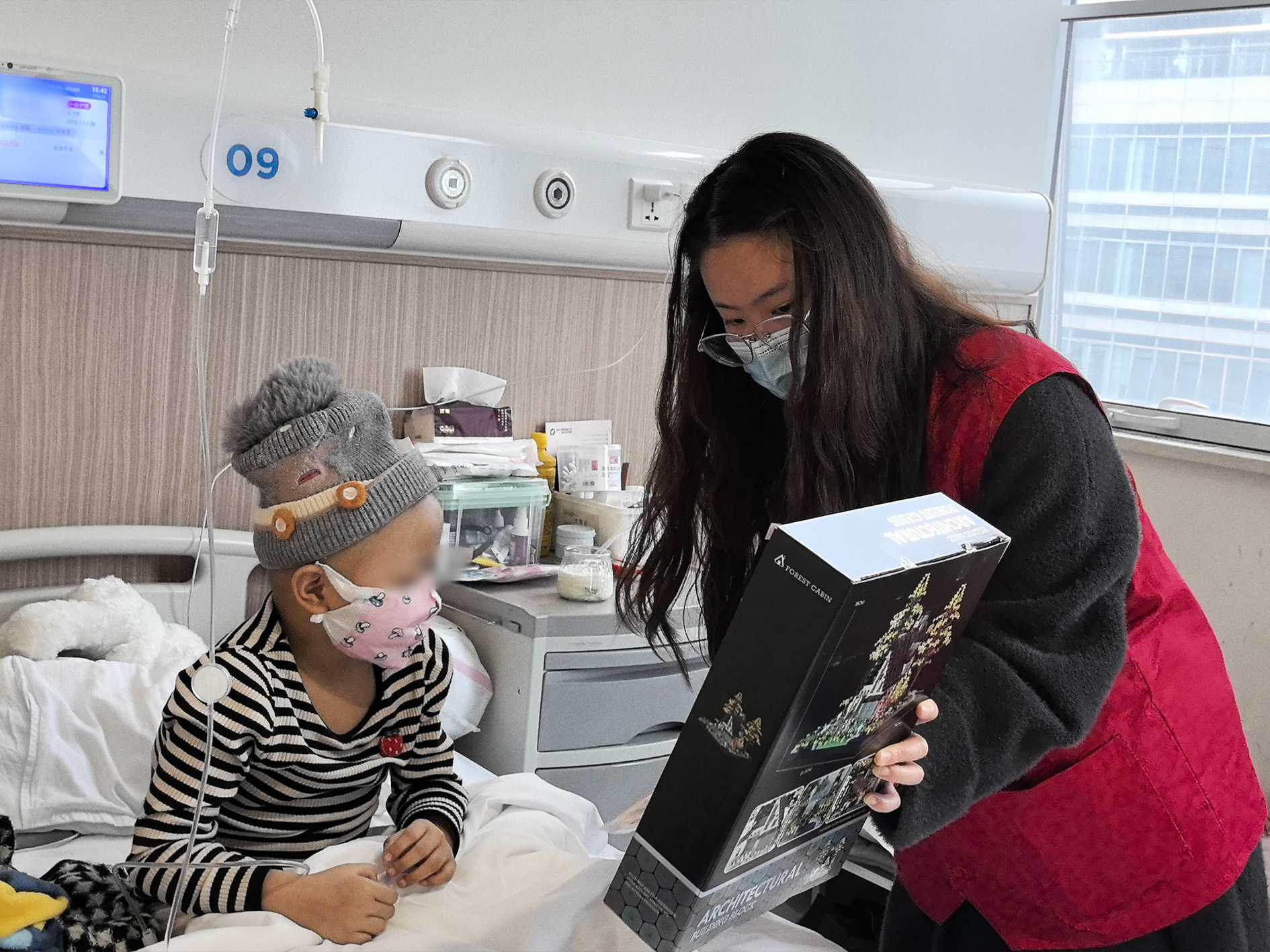 成都蓉生的青年志愿者們滿懷熱忱,踏入白血病公益組織 “小白驛站”。這里,孩子們正與病魔頑強(qiáng)抗?fàn)?,每一個笑容都顯得彌足珍貴。志愿者們圍坐在孩子們身旁,陪他們玩著充滿童趣的游戲,那些簡單的互動,卻能讓孩子們眼中閃爍出光芒。講故事時,志愿者繪聲繪色,孩子們聽得入迷,清脆的笑聲在房間里回蕩,這笑聲如同春日暖陽,穿透了疾病的陰霾,溫暖著每一位志愿者的心靈。